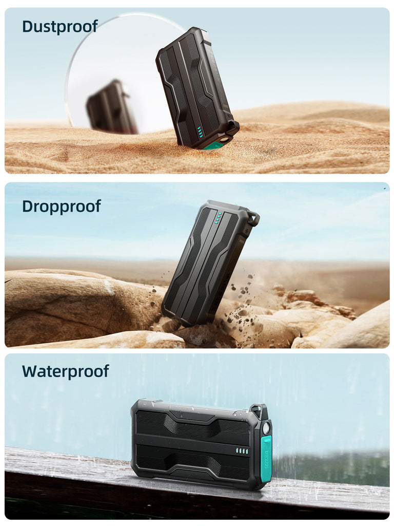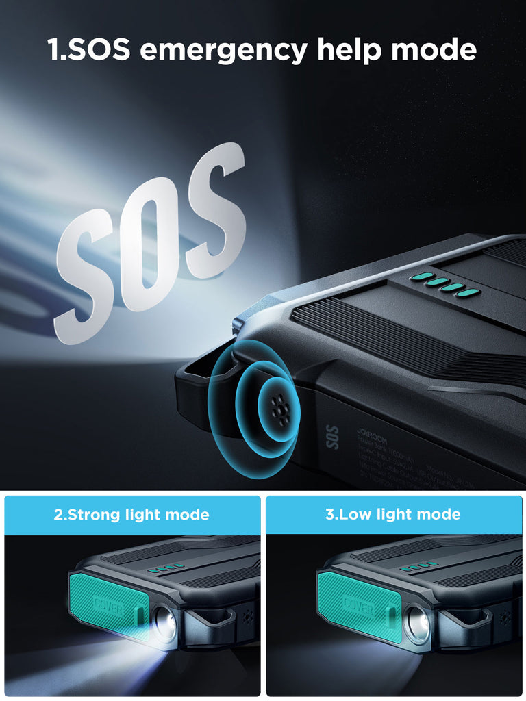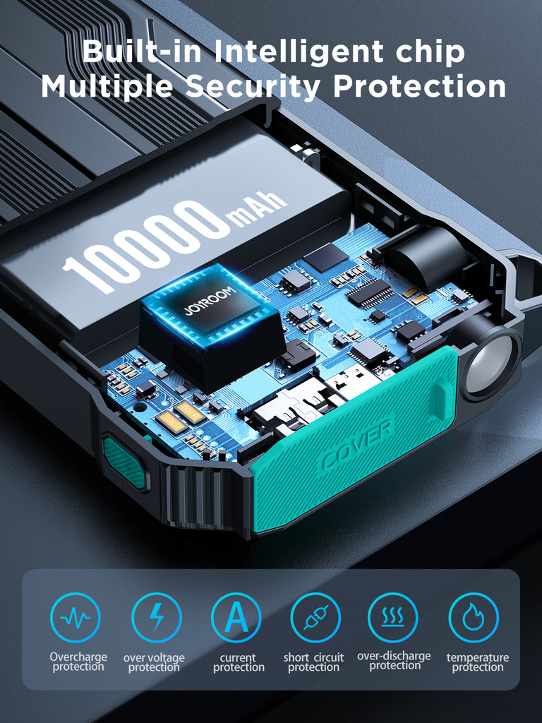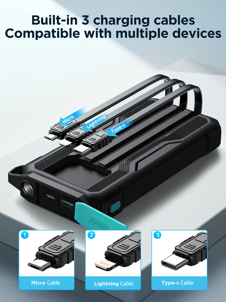 JR-L016 2.4A Power Bank with Built in 3in1 Cables 10000mAh-Black
