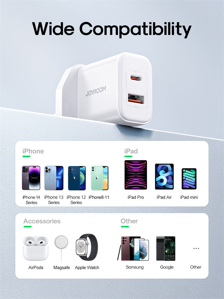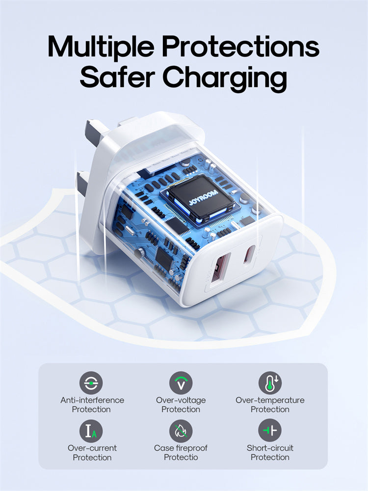 JR-TCF05 20W PD+QC Charger+C to L Cable-EU/UK/US-White/Black