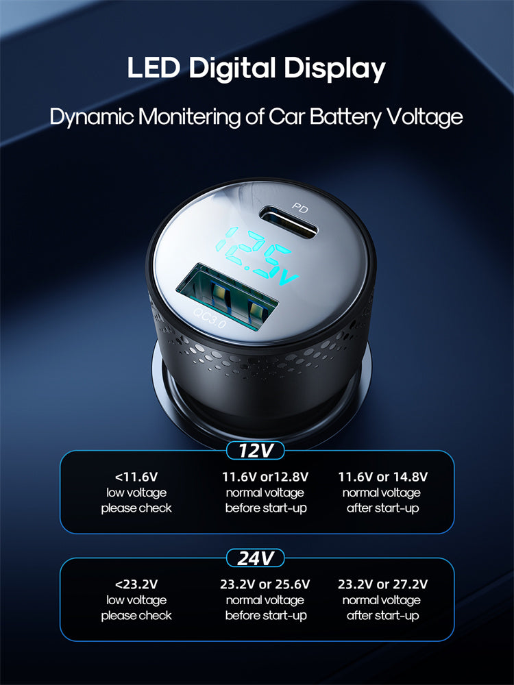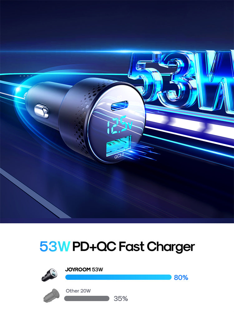 JR-CCD01 53W Dual-Port (A+C) Digital Display Car Charger-Black